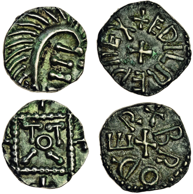 Anglo-Saxon, continental types, Sceatta, 1.21g, series E, var. A, 'porcupine' right, rev. standard (N.45; S.790A), toned, extremely fine, Northumbria, Aethelred II (first reign, 841-843/4), Styca, 1.28g, broÐer (N.188; S865), very fine (2)