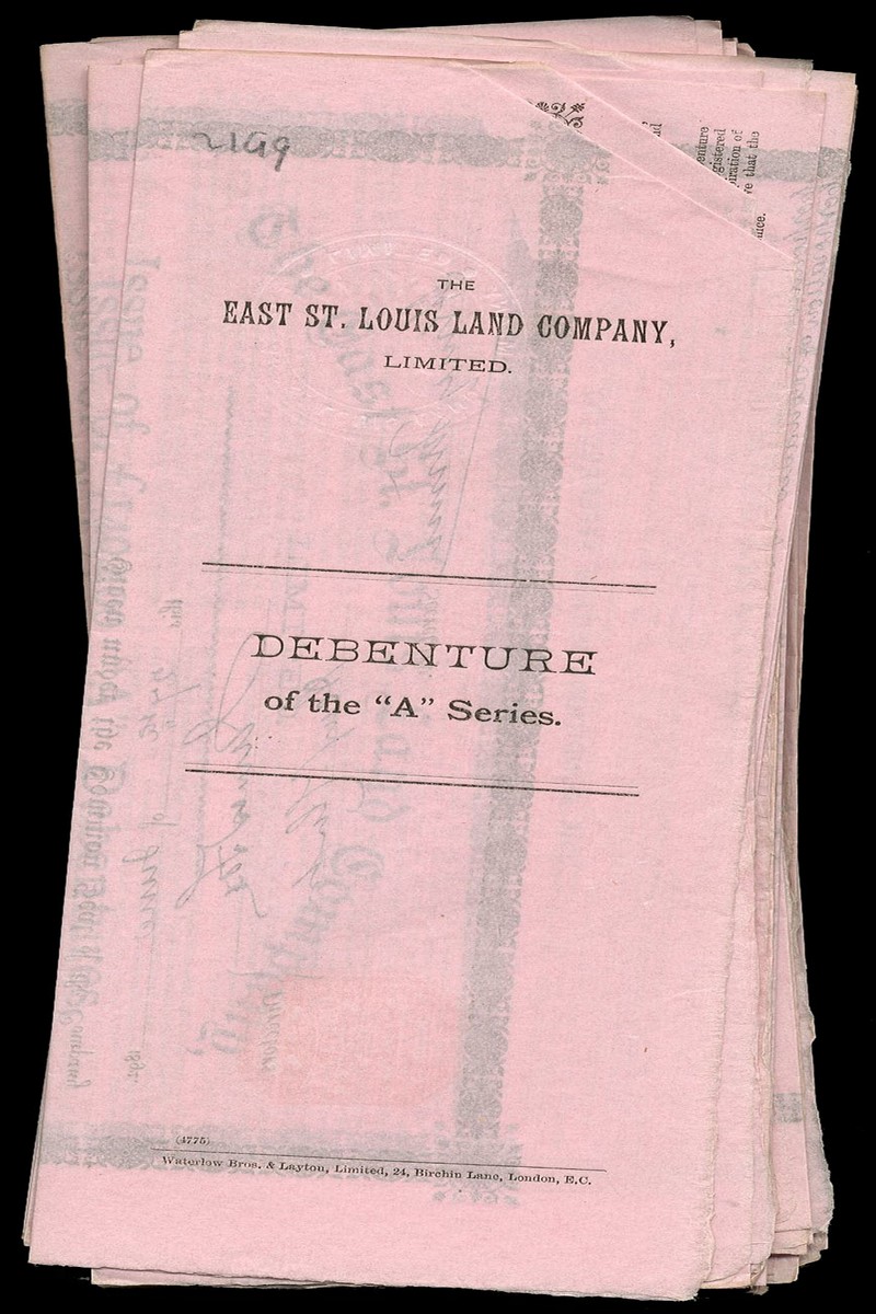East St.Louis - a city in St.Clair County, Illinois. Highly industrial during the 19th and early 20th centuries which has been very much reduced in later years. This company was one of many formed with British capital to deal with land sales.