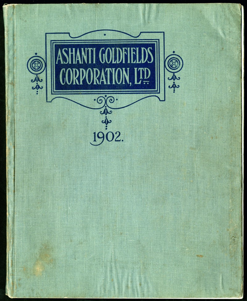 DAW, John W. Ashanti Goldfields Corporation Limited. Lecture on the Development of Gold Mining on the Corporation's property in Ashanti, by the General Manager and Consulting Engineer. Tillotson Press, London, 1902. Quarto, 94 pages, photographic illustrations throughout plus maps and charts. Original cloth backed boards, minimal wear, covered in glassine wrapper. Extremely rare, no copy listed in any library worldwide.