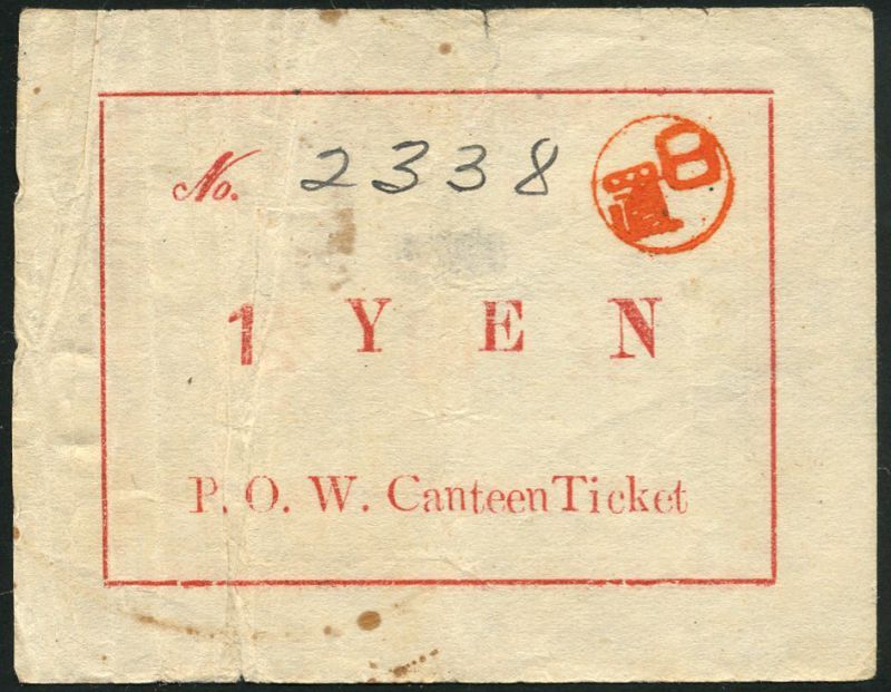 Taiwan under Japanese occupation, 10 sen, serial number 2489, black text on white paper, 50 sen, serial number 587, blue text, 1 yen, serial number 2338, red and white, all ND (1939-1945), English text one side, Japanese text on other side, the 10 sen and the 1 yen with Hioki handstamp, 50 sen with Wakasugi handstamp