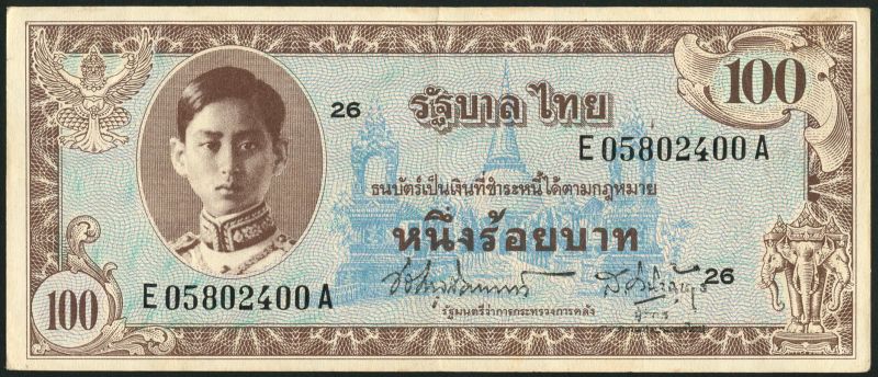 Government of Thailand, Military Authority issues, a set of the ND (1946) issue, series 8, comprising 1,5,10,20 and 100 baht, all King Rama VIII facing at left