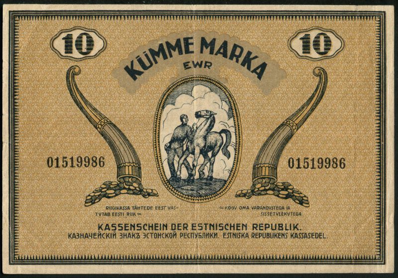 Republic of Estonia, Treasury notes, 5,10 (2),20 and 50 penni, ND (1919), 1,3 mark, 5 mark, pale blue, 10 mark (2), brown and 25 mark, violet, all 1919, the last four notes with agricultural vignettes