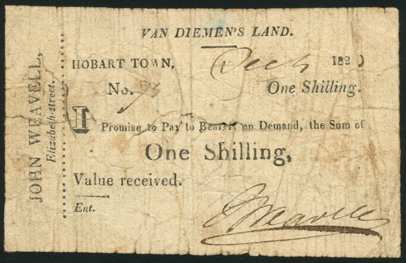 (x) Van Diemen's Land, John Weavell, 1/- (3), Hobart Town, 1823, black and white, all John Weavell signatures