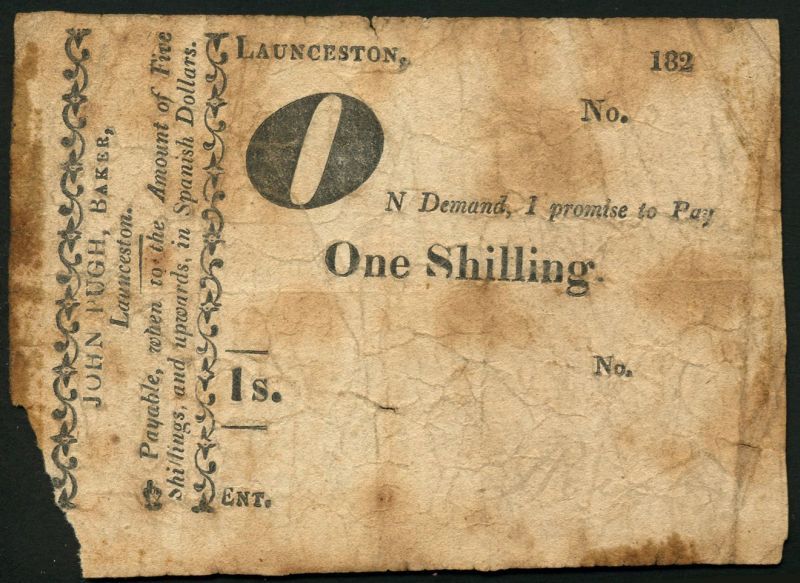 (x) Van Diemen's Land, Thomas Briggs/Hopkins/Roberts/John Pugh, 1/- (5), Hobart Town, 1823, black and white