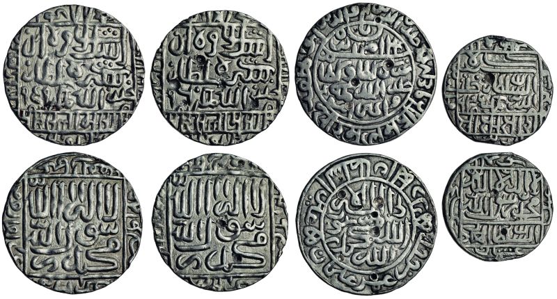 Sultans of Delhi, Sher Shah (AH945-952; AD 1538-45), Rupee, 11.20g, AH 946, mintless type; Islam Shah (AH 952-960; AD 1545-52), mintless Rupees (3): "1477" type (2), AH 959, 960, with a broad-flan circular-area type, AH 954, probably struck in Bengal (G&G D819, 980, 982), very fine, the usual test marks, last coin scarce (4)