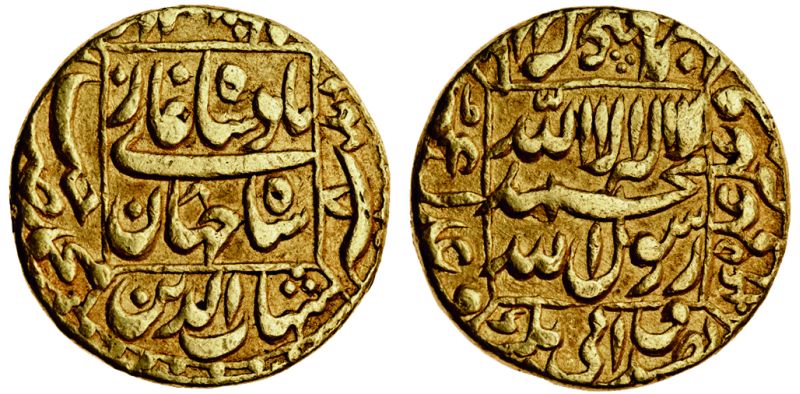 Mughal, Shah Jahan (AH 1037-1068; AD 1628-58), gold Mohur, 10.87g, Patna, AH 1045 year 8, square area type (KM. 260.14), very fine