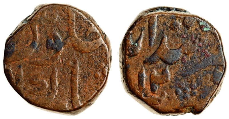 This coin was published by Nicholas Rhodes in JONS 207 (2011). It is unusual in having neither the name of a ruler or a Hijri date. After Aurangzeb, only two Mughal rulers reigned for 12 or more years, Muhammad Shah and Shah 'Alam II. No other copper coins are known from Bengal for the reign of Muhammad Shah; nonetheless, his reign has to be a possible candidate. On the other hand, if the coin were struck during the reign of Shah 'Alam II, then the coin would have to be an otherwise unknown and unrecorded issue of the Bengal Presidency of the EIC. Either way, the coin remains enigmatic and very rare.