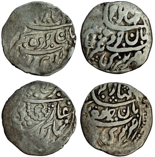 Garhwal, Gorkha occupation, Timashas (2), in the names of Muhammad Akbar II and Girvan Yuddha, dated 69 in Nagari numerals within a semi-circle of beads, the other in the name of Girvan Yuddha alone, with the same legend on both sides (RBV 1401, 1386), usual flatness, fine to good fine, scarce (2)