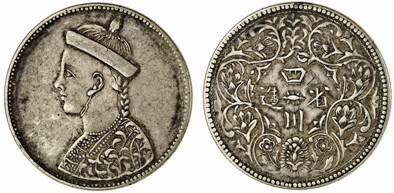 China, issued for Tibet (1902-1911), Sichuan Rupee, 11.45g, undated, small head without collar, rev. horizontal rosette (KM 3.1), good fine and scarce