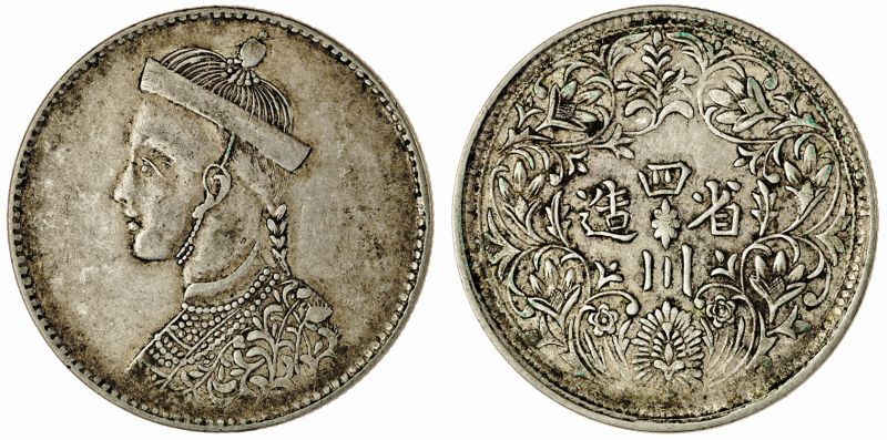 China, issued for Tibet, Sichuan Rupee, 11.35g, undated, small head with collar, rev. vertical rosette, without leaf in north-east position (YZM 451-472; KM 3.2), dirty surfaces both sides, very fine