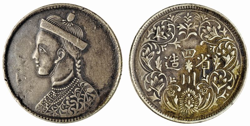 China, issued for Tibet, Sichuan Rupee, 11.19g, undated, small head with collar, rev. vertical rosette, with leaf in north-east position (YZM 471-472; KM 3.2), toned very fine / good fine