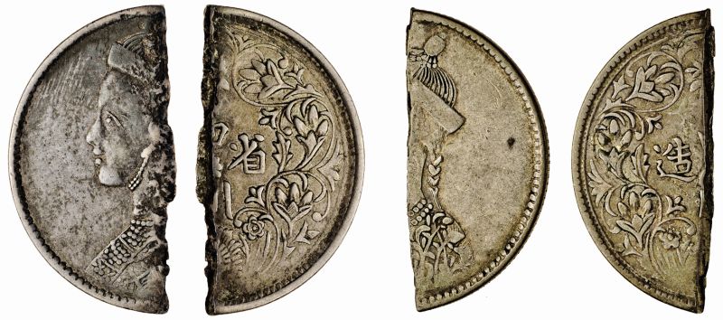 China, issued for Tibet, cut Sichuan Rupees of the early type (2), 5.93g and 4.90g (KM. Y#B5) very fine (2)