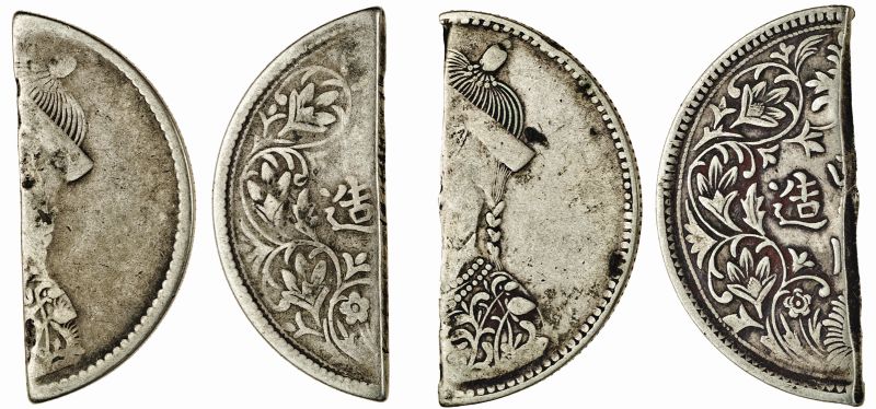 China, issued for Tibet, cut Sichuan Rupees of the early type (2), 5.47g and 4.54g (KM. Y#B5) very fine (2)
