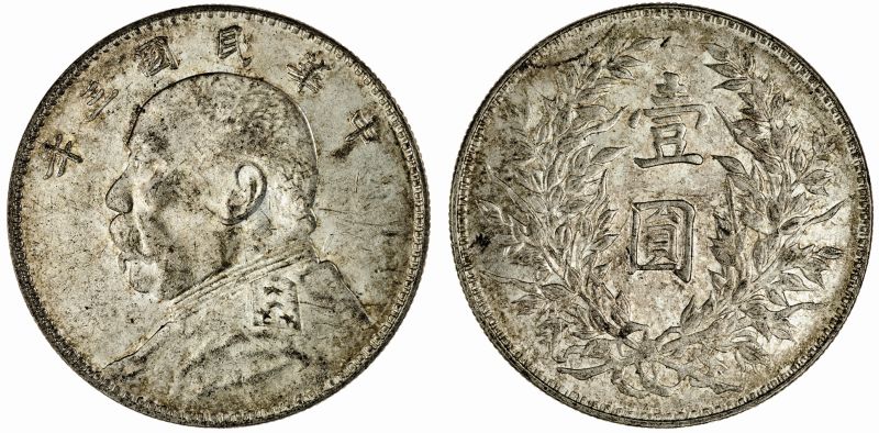 Chinese Republic for Tibet (c. early 1950s), Yuan Shikai Dollar, 26.46g, dated 3rd year of the Republic, rev. closed "triangle" in the upper part of the character for yuan (KM 329var), fine