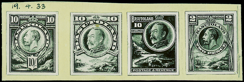 The following 153 lots have been removed from the printer's daily photographic record books, many being of hand-painted essays and unaccepted designs, and mostly mounted on card/paper. The dates stated are the entry dates into the archive record books