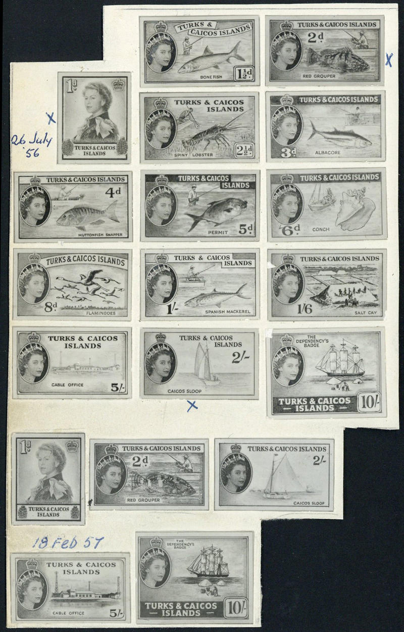 The following 153 lots have been removed from the printer's daily photographic record books, many being of hand-painted essays and unaccepted designs, and mostly mounted on card/paper. The dates stated are the entry dates into the archive record books