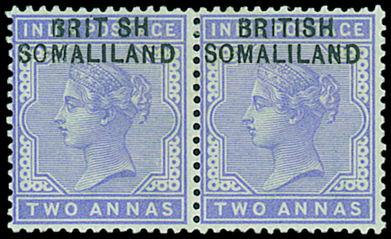 2a. pale violet horizontal pair, the left-hand stamp with variety "brit sh", fine mint. S.G. 3, 3a, £375. Photo