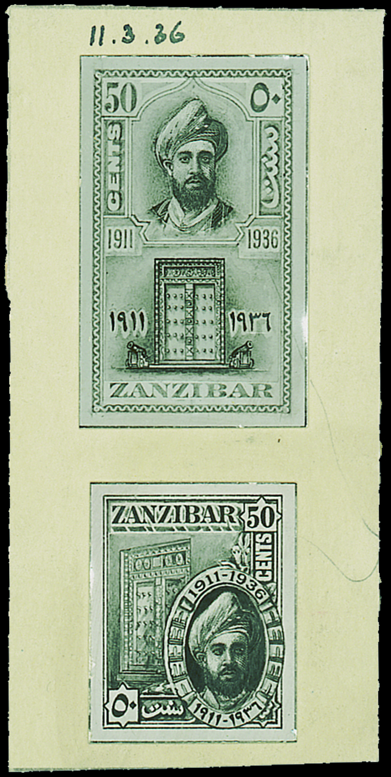 1936 (11 Mar.) 50c. (two unadopted designs), 1956 (20 June) 5c. to 7s.50 set of seven values similar to issued designs; also Revenue 1969 (11 Feb.) 20/- (three unadopted designs). Photo