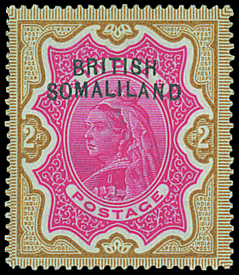2r. carmine and yellow-brown, variety curved overprint, fine mint. Scarce. B.P.A. Certificate (1977). S.G. 11a, £550. Photo