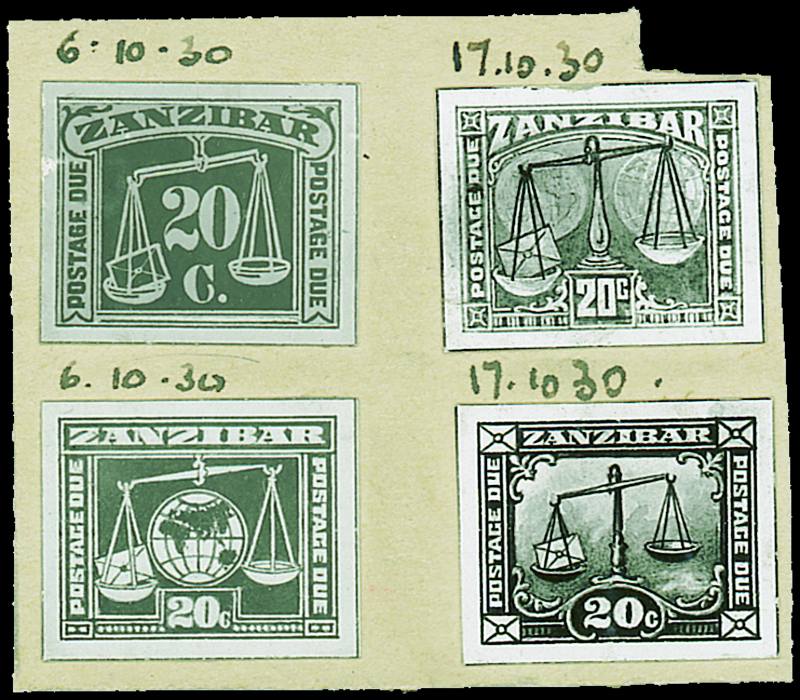 1930 (6-10 Oct.) Postage Due 20c., four different unadopted designs. Photo