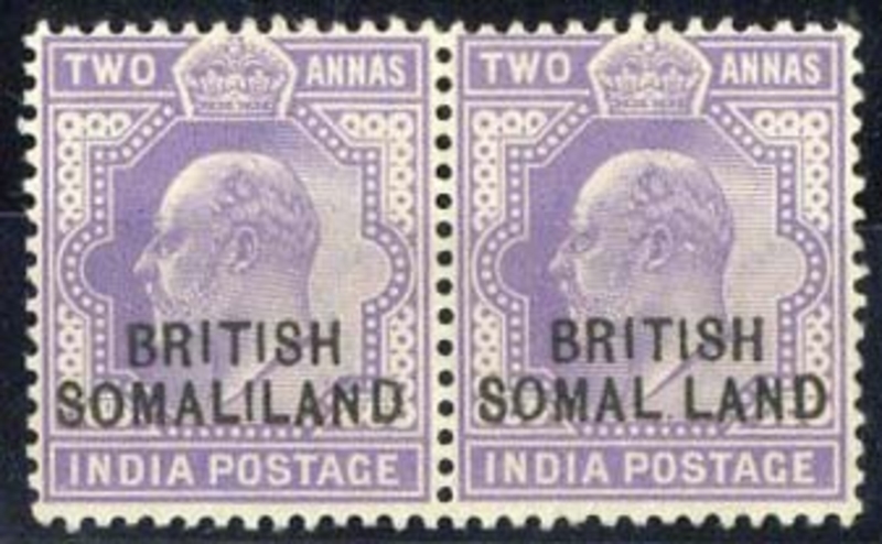 2a. violet horizontal pair, the right-hand stamp with variety "somal.land", fine lightly mounted mint. S.G. 27d, £120