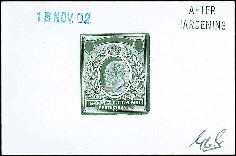 Rupee values master with uncleared value tablets and surrounds, in black on glazed card (92x60mm.) marked "after hardening", initialled and dated "18 nov. 02". Photo