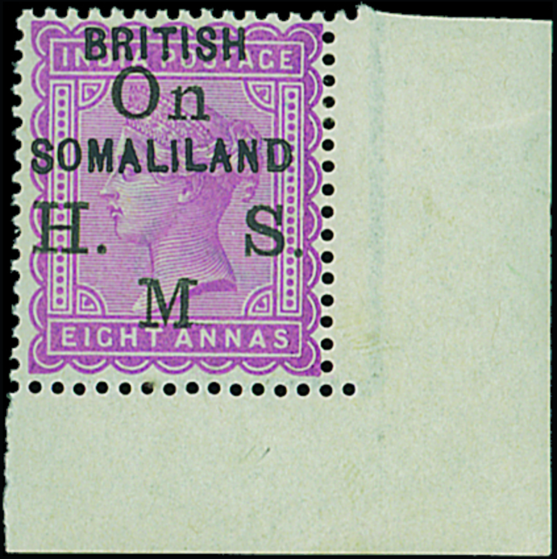 8a. purple lower right corner example, variety stop omitted after "m" of "o.h.m.s.", lower pane, Row 10/12, fine mint. A most appealing example of this very rare stamp of which only ten examples can exist. B.P.A. Certificate (2012). S.G. O4c, £3,750. Photo