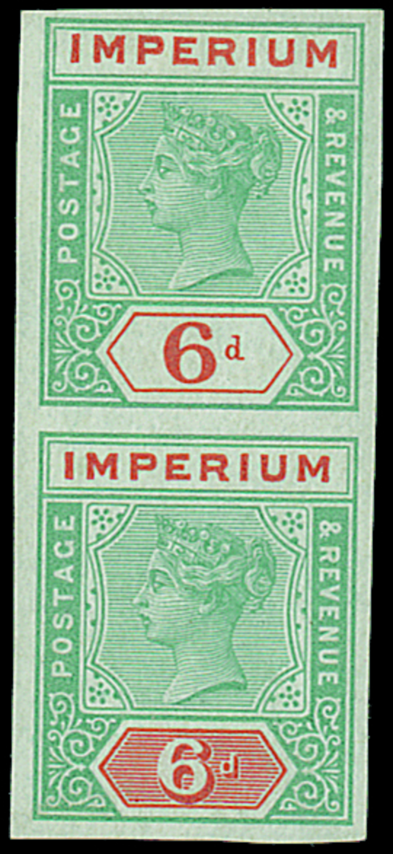 Postage & Revenue 6d. vertical pair in blue-green and brown with shaded and unshaded value tablets se-tenant, on unwatermarked gummed paper; fine. Photo