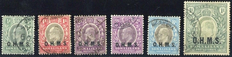 1904-05 ½a. to 1r. set of six, used; the MCA 2a. with part Obbia c.d.s. and the 1r. with part Berbera c.d.s., neither guaranteed. S.G. O10-15