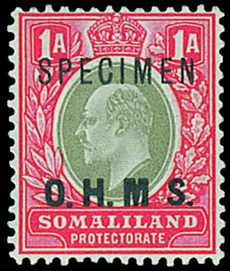 1a. grey-black and carmine, variety no stop after "m" and overprinted "specimen", fine mint. Rare in this form. S.G. O11as. Photo