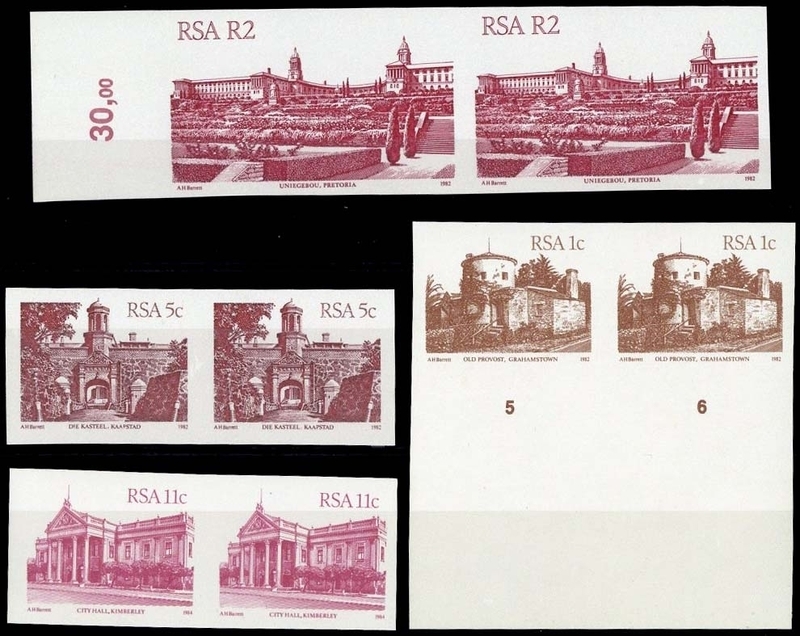 1982-87 Architecture, Recess 5c., 2r., Litho. 1c., 11c. horizontal pairs, all imperforate unmounted mint, fine. S.G. 511a, 515ab, 520b, 527 var.
