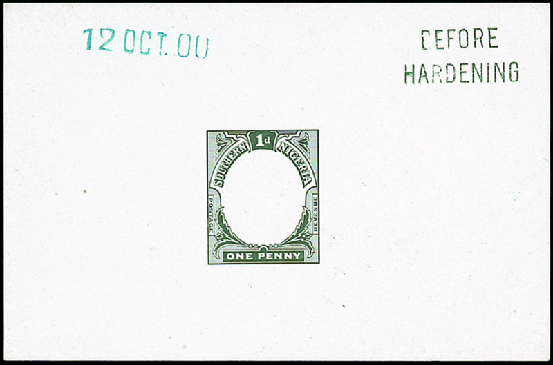1d. frame in black on glazed card (92x60mm.), marked "before hardening" and dated "12 oct. 00"; fine. Photo