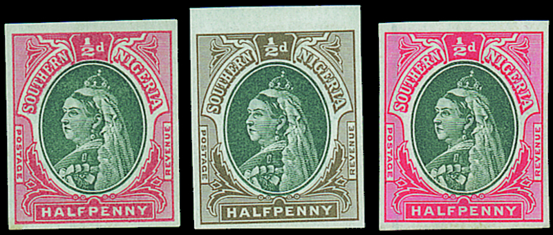 ½d. (3) with vignettes in black, frames in deep scarlet, brown and rose-carmine; fine. Photo