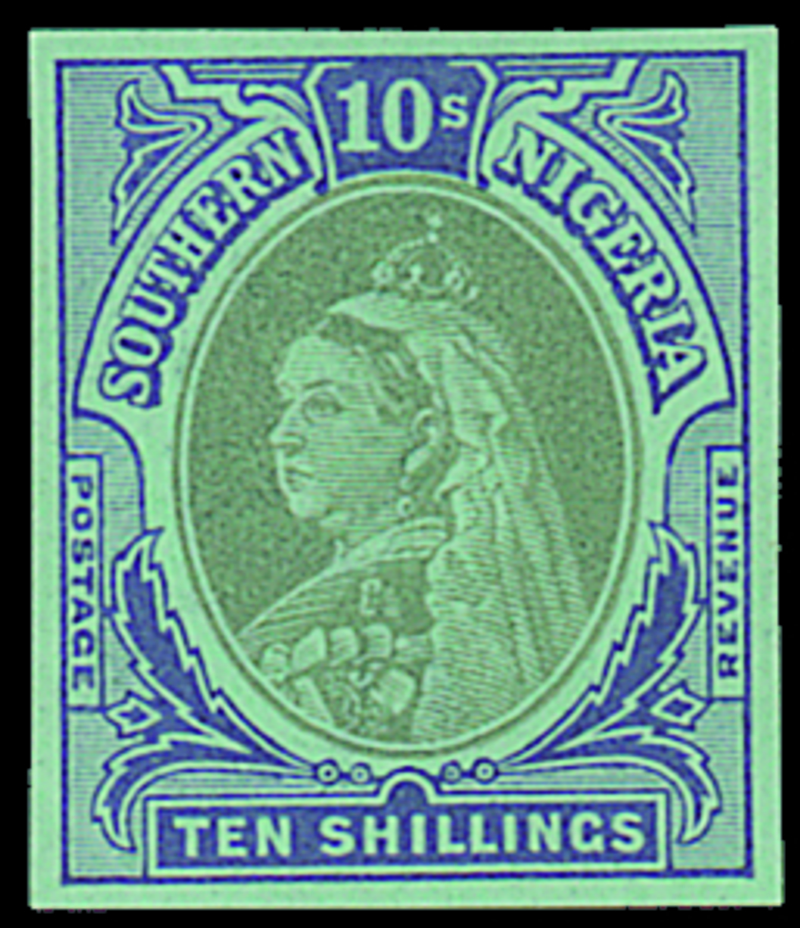 10/- in grey-black and violet on blue; crease at lower left, otherwise fine and with few colour trials known using this high value. Photo