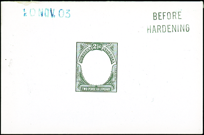 2½d. frame in black on glazed card (92x60mm.), marked "before hardening" and dated "20 nov. 03"; fine. Photo