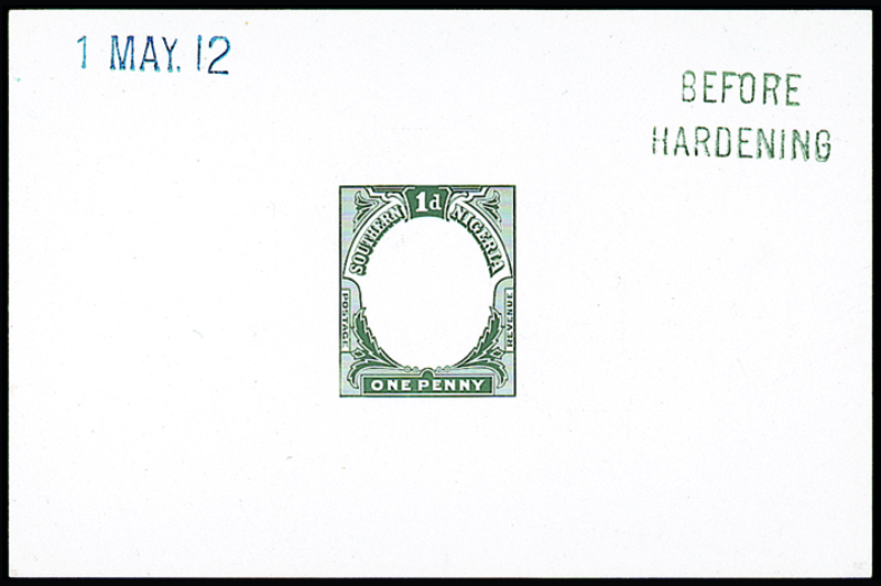 1912 1d. frame die proof in black on glazed card (92x60mm.), marked "before hardening" and dated "1 may 12"; fine. Photo