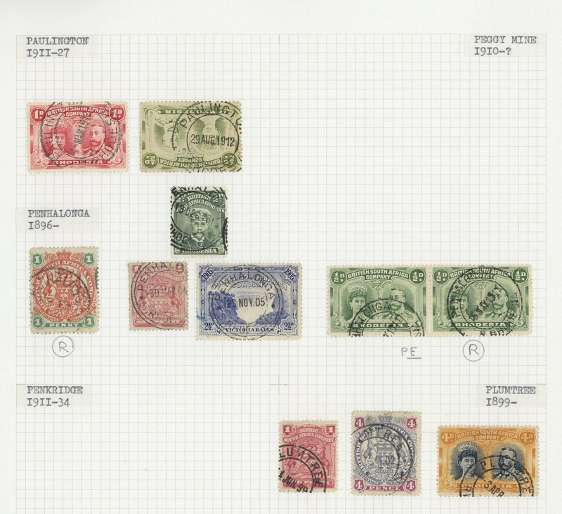 A collection of cancellations on loose stamps (235 items) arranged alphabetically in an album, a range of different types on a range of values (one Falls 5/- with Mahaka c.d.s.) to 1924 and covering many different offices from Antelope Mine to West Nicholson. Viewing recommended