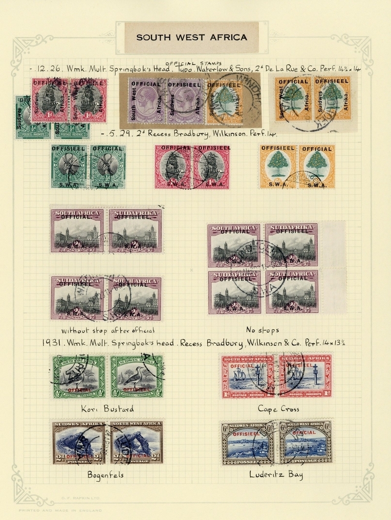 1927-52 used collection with the basic issues, less O21, complete including the six listed 1929 no stop varieties; the 1927 2d. pair (some colour loss) on piece with 6d. Afrikaans single; generally fine. Cat. £1,850
