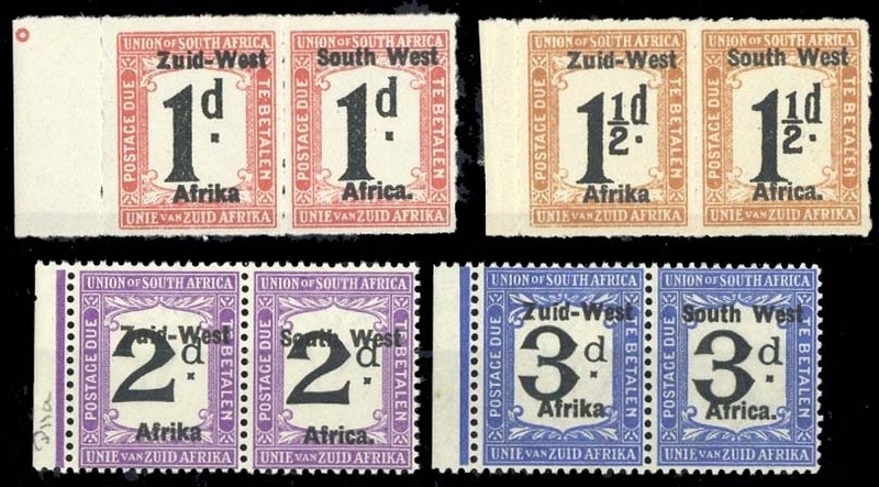 — 1d., 1½d. and Setting II 2d. and 3d. marginal horizontal pairs, each with variety no stop after "Afrika", fresh mint. S.G. D7b, 8b, 11a, 12a, £690