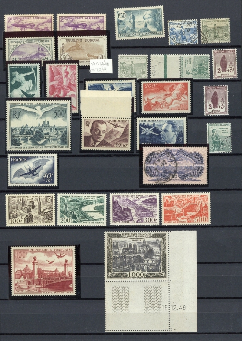 1849-2009 mint and used collection housed in eight stockbooks or folders contained in a carton, many thousands, including some early issues with covers, 1898-1900 50c. type I, 2f., 1917-19 Orphans 50c. + 50c., 1918 Red Cross 15c. + 5c., 1922 Orphans, 1925-32 10f., 20f., 1926-27 Orphans, 1929 Marseilles Air 2f., 5f., 1928, 1930 and 1931 Sinking Fund single values mint and used, sets of three, 1929-33 perf. 11 20f. used, perf. 13 20f. original gum, 1936 Air 50f. ultramarine on rose, 1936 South America flight set original gum and used, 1937 Museums (3), 1938 Ader 50f. (2), 1949-50 Air 1000f., 1949 CITEX 10f. (2), a wonderful range of modern issues with sheets, booklets, presentation packs, Red Cross booklets, etc., mixed condition but a valuable and useful lot worthy of careful inspection
