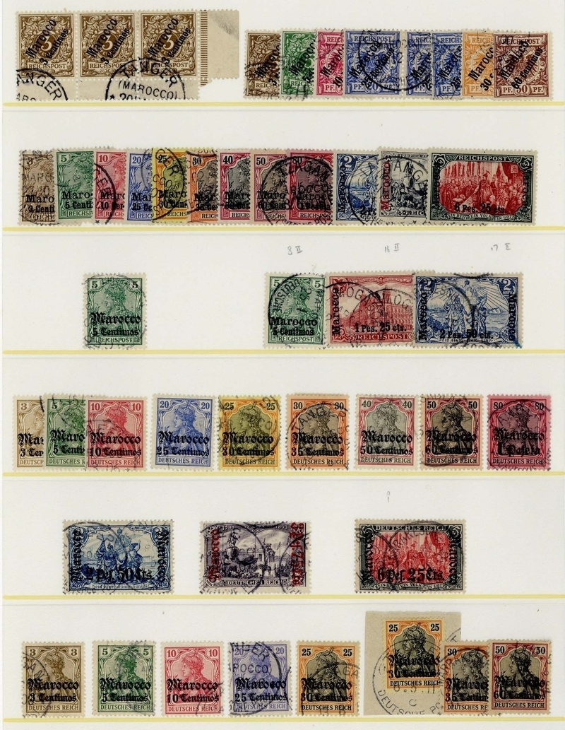 Collection on pages, seventy-three stamps, including 1899 set, 1900 3p. 75c. on 3m. used, 6p. 25c. on 5m. type I hand painted borders original gum, 1903 1p. 25c. on 1m. and 2p. 50c. on 2m. both used, 1905 6p. 25c. on 5m., 1911-18 to 6p. 25c. on 5m. (2), etc., chiefly fine