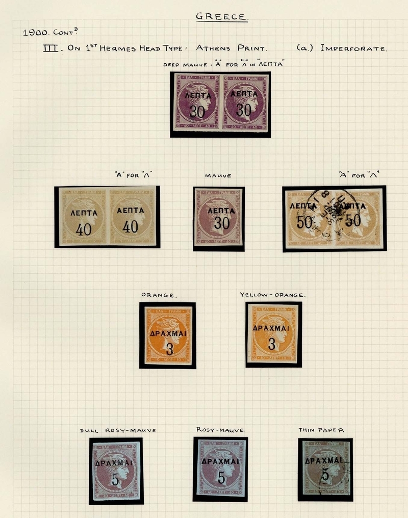 1900-01 Surcharges, forty-seven stamps, including 1900 Athens print imperf. 1d. on 40L., perf. 11½ 1d. on 40L. (3), Athens print imperf. 30L. on 40L., 40L. on 2L., 50L. on 40L. each in a horizontal pair with the "A" variety, 5L. on 40L. (3), perf. 11½ 3d. on 10L. (2), 5d. on 40L., 1900-01 1d. on imperf. 40L., perf. 11½ 1d. on 40L., Olympic Games 25L. on 40L. (2), 50L. on 2d., 1d. on 5d., 2d. on 10d., etc., chiefly good to fine
