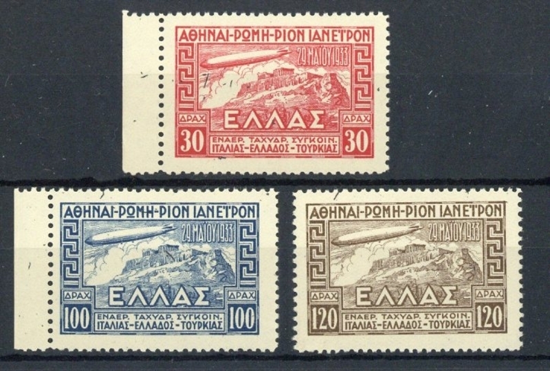 1933 Zeppelin set, unmounted mint, 120d. with small natural inclusion, fine. S.G. 458-460, £350