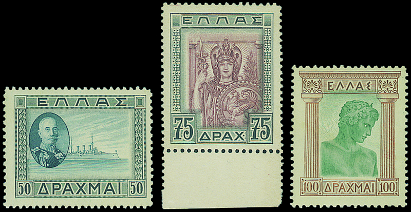 1933 50d., 75d. and 100d., large part original gum, fine and fresh. A rare set. S.G. 475-477, £1,900. Photo