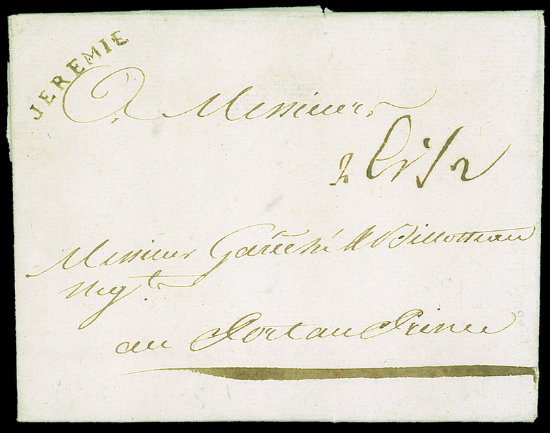 1781 entire letter to Port au Prince with fine handstruck "jeremie" and attractive red wax seal. Photo
