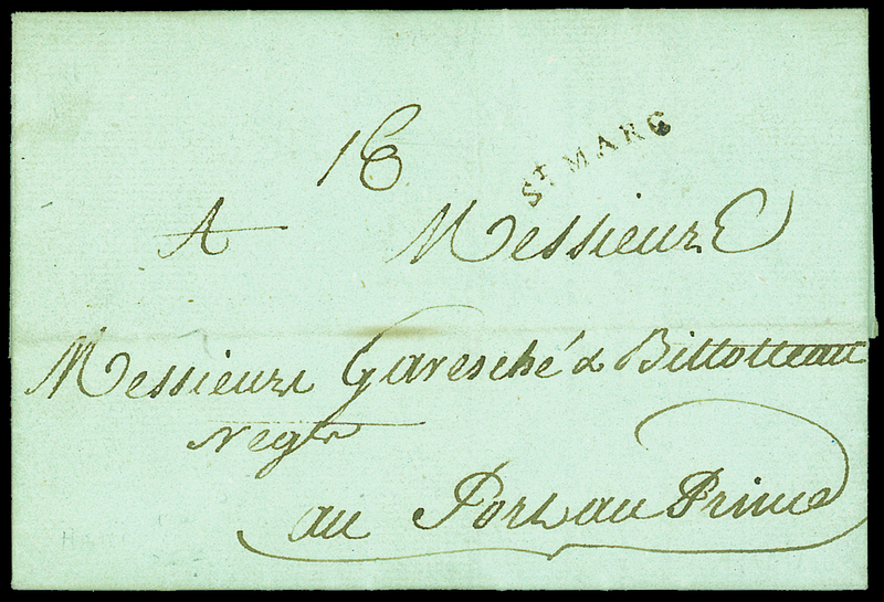 1781 (16 Feb.) entire letter to Port au Prince with fine handstruck "st. marc", horizontal filing fold well clear of the marking, fine. Photo