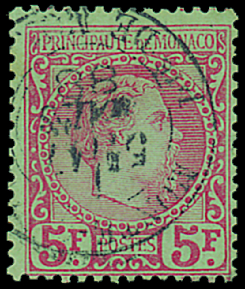5f. carmine on green, used, good colour and perfs., fine. S.G. 10, £2,500. Photo