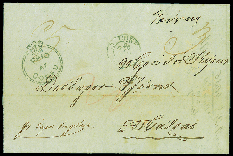 1851 entire letter with fine Crowned Circle "paid/at/corfu", horizontal filing fold clear of the marking, fine. S.G. CC2. Photo