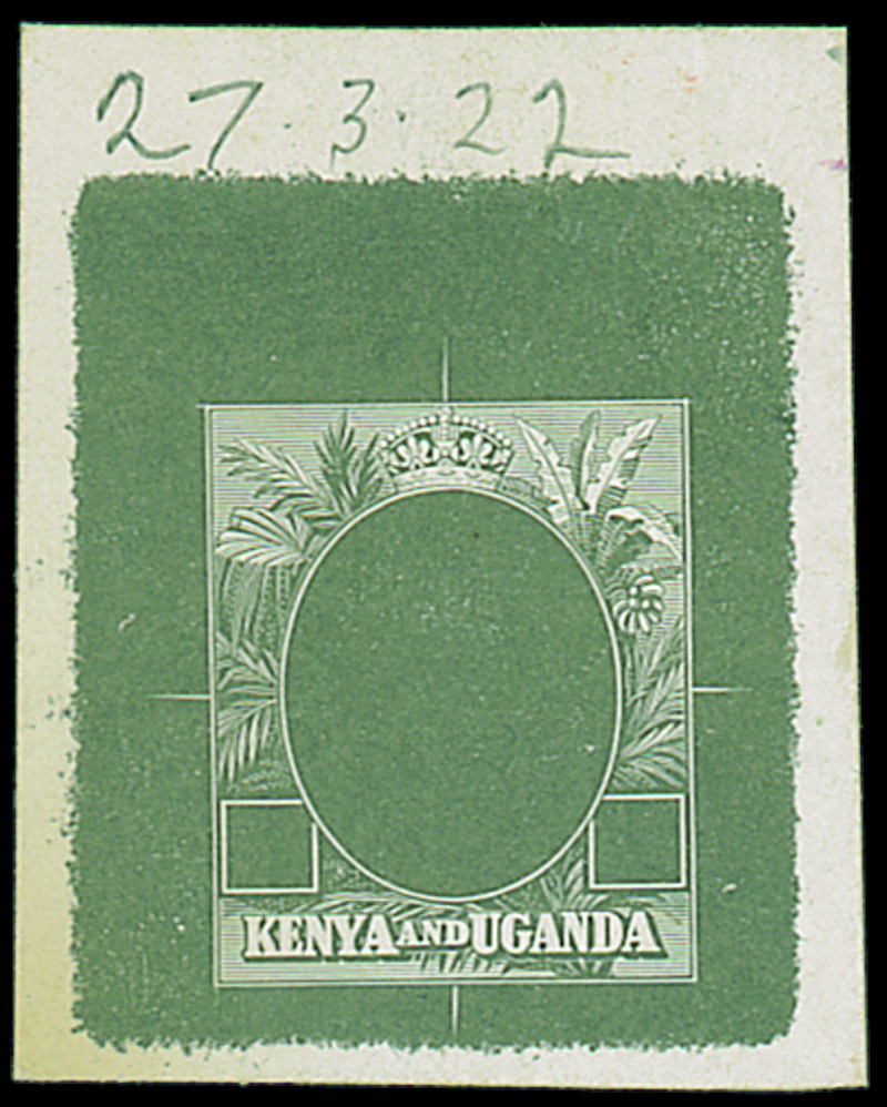 Low value master with uncleared vignette, value tablets and surround, in black on glazed card dated "27.3.22" in pencil at top; trace of discolouration at south west corner, otherwise fine and very rare. Photo
