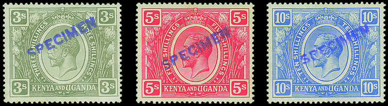1c. to 10s. 1922 set of fourteen each handstamped "specimen" (21x3mm.) diagonally in violet, all with toned gum. A very rare group which are believed to have been made as supplementary distributions in response to U.P.U. circulars requesting that Specimens be sent direct to either a new member or reorganised group of members. Photo
